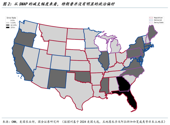 尤其在减支这个维度下,我们再次强调特朗普并没有把OBBB法案当作政治工具:SNAP福利削减中,他对于传统红州和政治成本更高的摇摆州反而更加激进。(关于更多OBBB法案的减支决心,可参见《换个视角看“大漂亮法案“》)