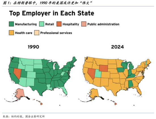 一千个人眼中有一千个“黄金时代”,但在特朗普眼中,1990年那个制造业繁荣的美国,大概率比当下更加“伟大”。